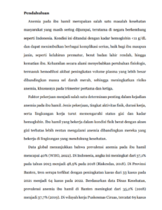 Pendahuluan Anemia pada ibu hamil merupakan salah satu masalah kesehatan masyarakat yang masih sering dijumpai, terutama di negara berkembang seperti Indonesia. Kondisi ini ditandai dengan