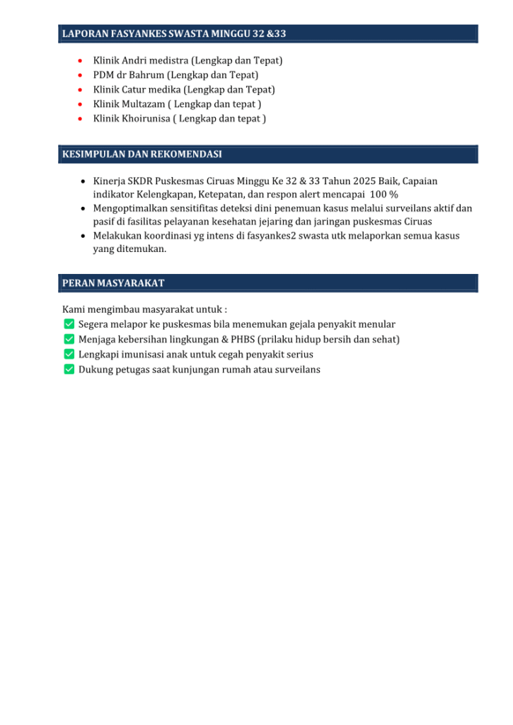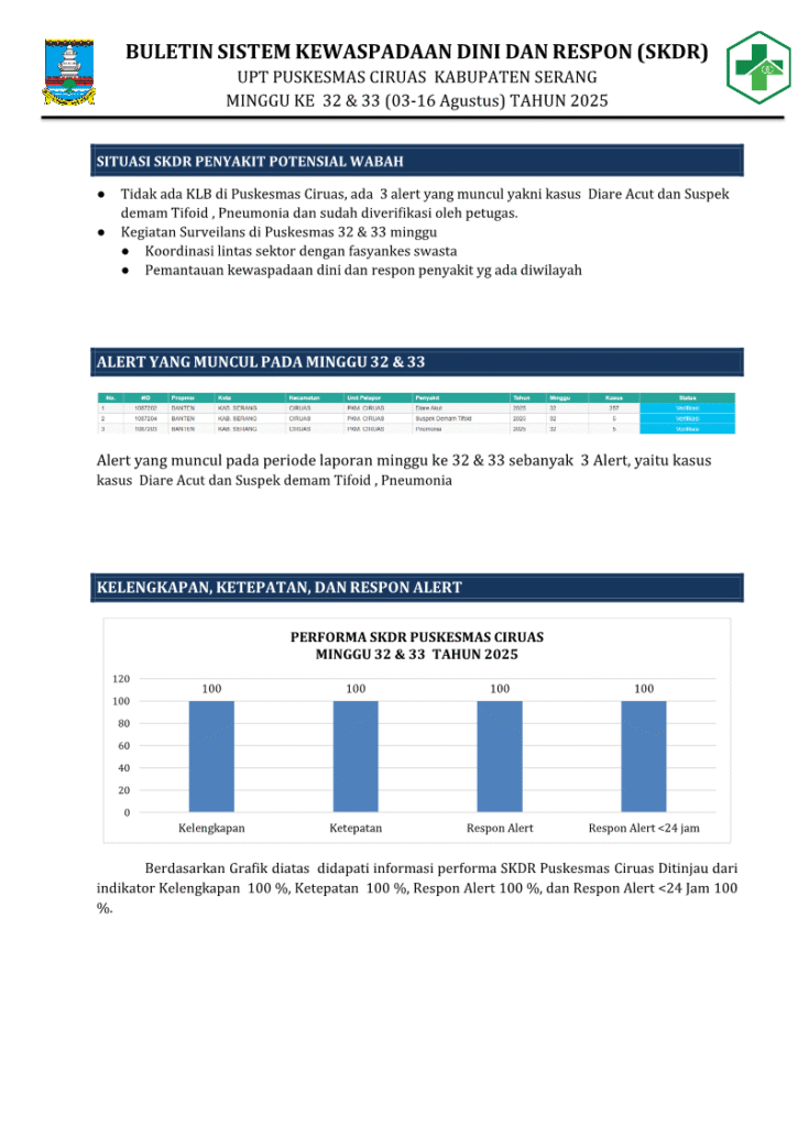 BULETIN SISTEM KEWASPADAAN DINI DAN RESPON (SKDR) UPT PUSKESMAS CIRUAS TAHUN 2025 MINGGU KE 32 & 33 (03-16 Agustus)